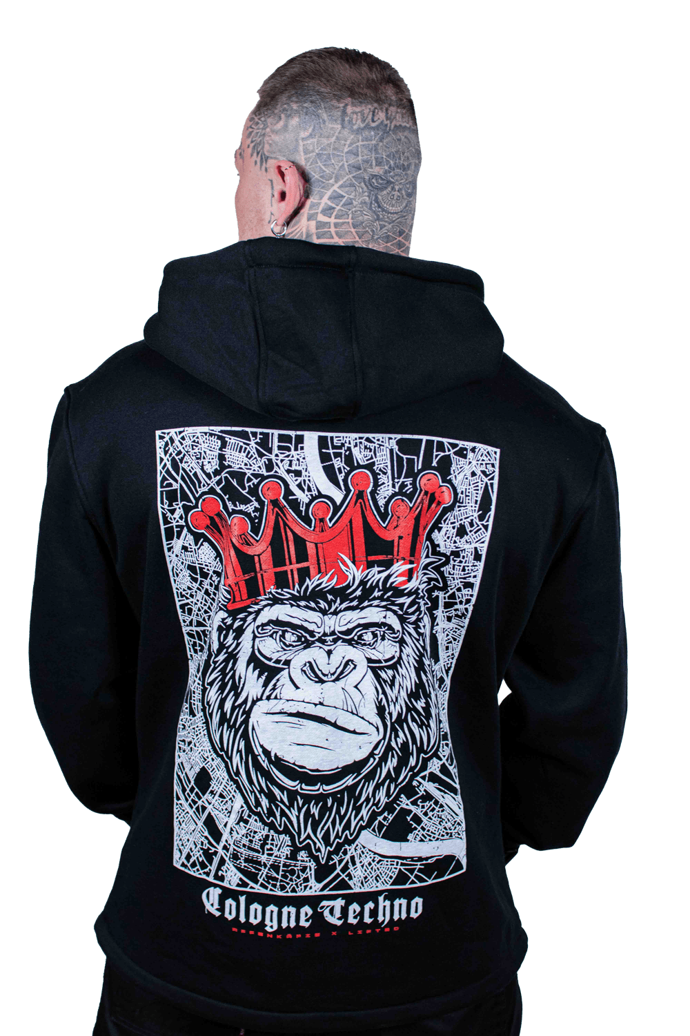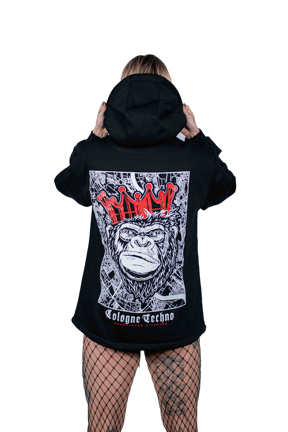 “Cologne Techno” Printed Gorilla Hoodie Black